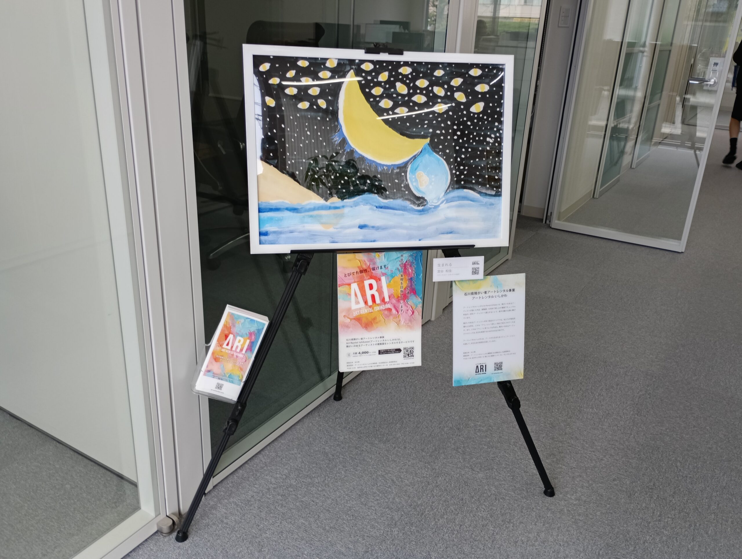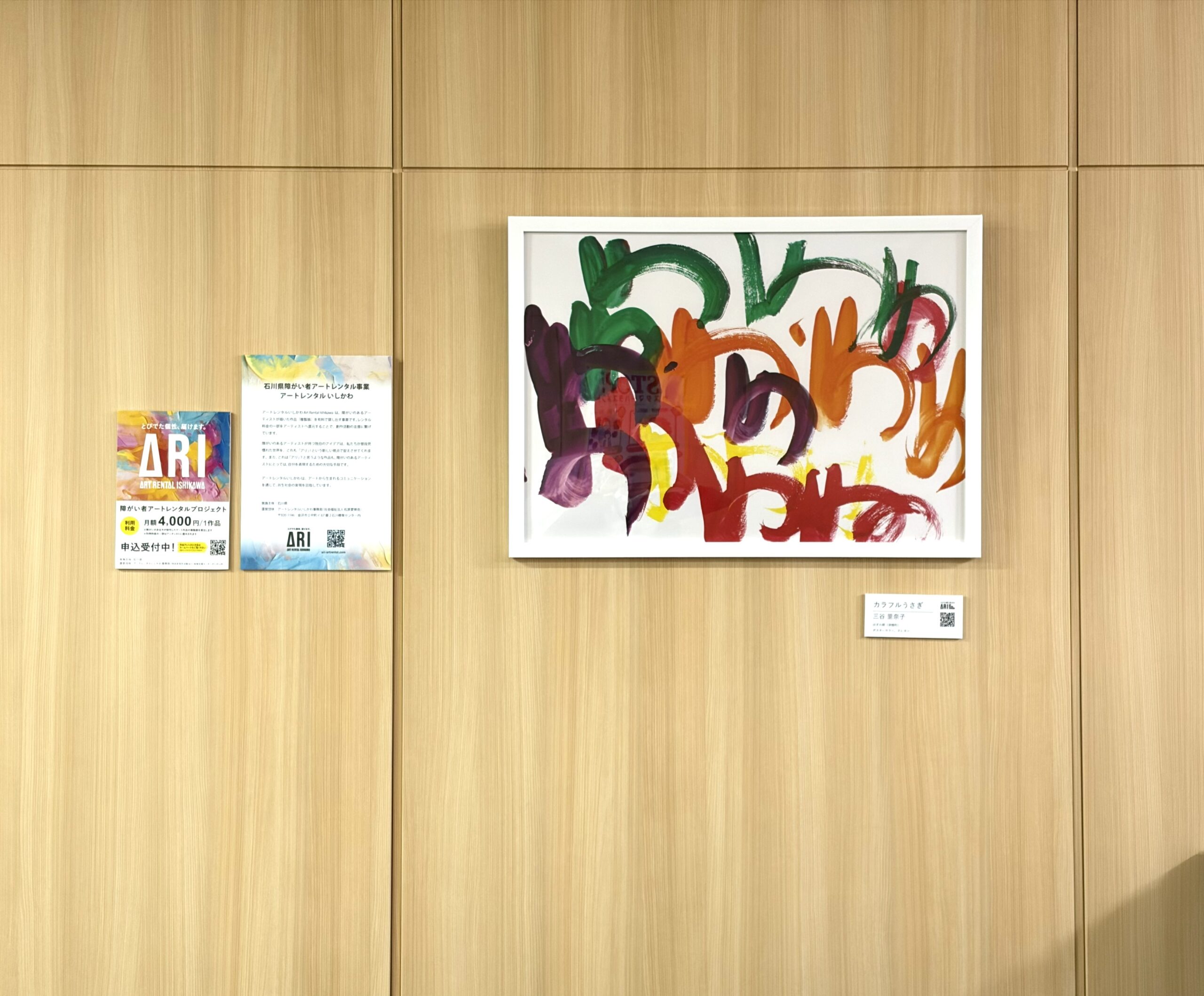 Art Rental Ishikawa(アートレンタルいしかわ)は、障がいのあるアーティストの作品(複製画)をレンタルするサービスです。 会社やお店に個性豊かなアートを飾ることで、空間を彩るだけでなく、 障がいのある人と社会をつなぐきっかけにもなります。 アートレンタルいしかわは、アートから生まれるコミュニケーションを通じて、共生社会の実現を目指しています。