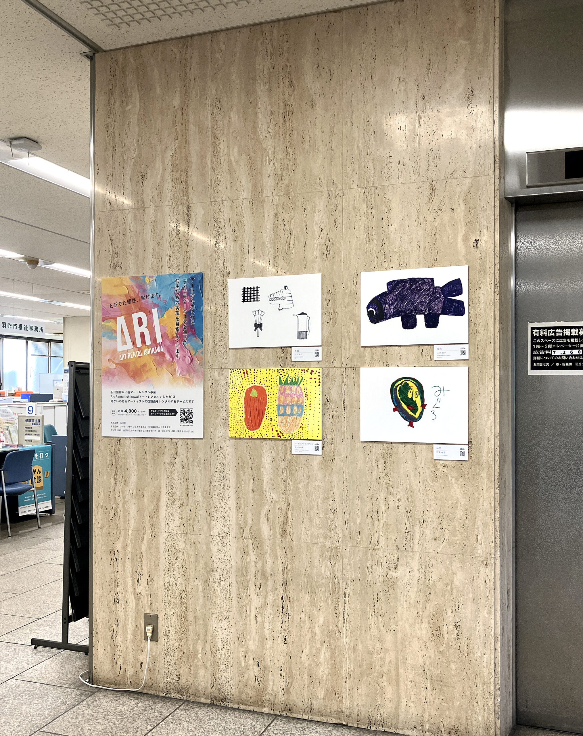 箔市役所では、玄関入口のエレベーターホールの前に4作品を展示していただいています。それぞれに作者の思いが詰まった素敵なアートばかりですので、来庁の際はぜひ一度ご覧ください。