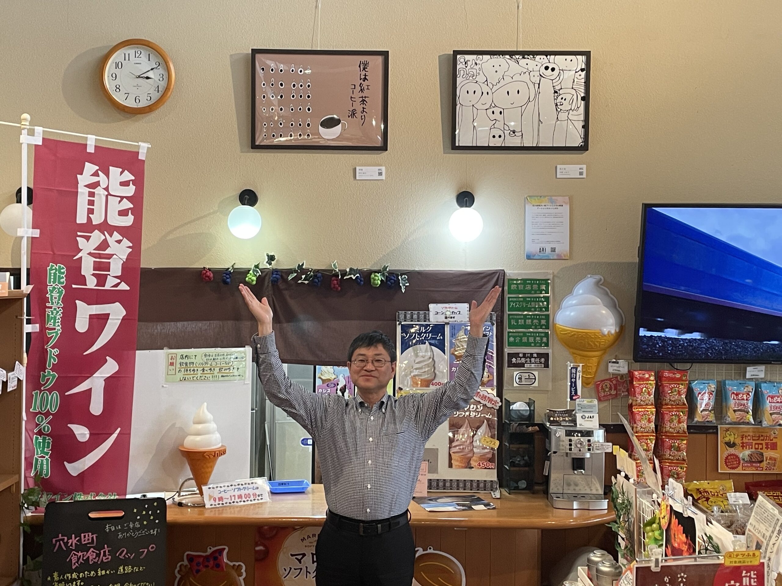 能登の塩や輪島塗、珠洲焼など能登全域のお土産が揃った賑やかな店内にアートレンタルいしかわの2作品が展示されています。お近くにお寄りの際はぜひとも足を運んでみてはいかがでしょうか。