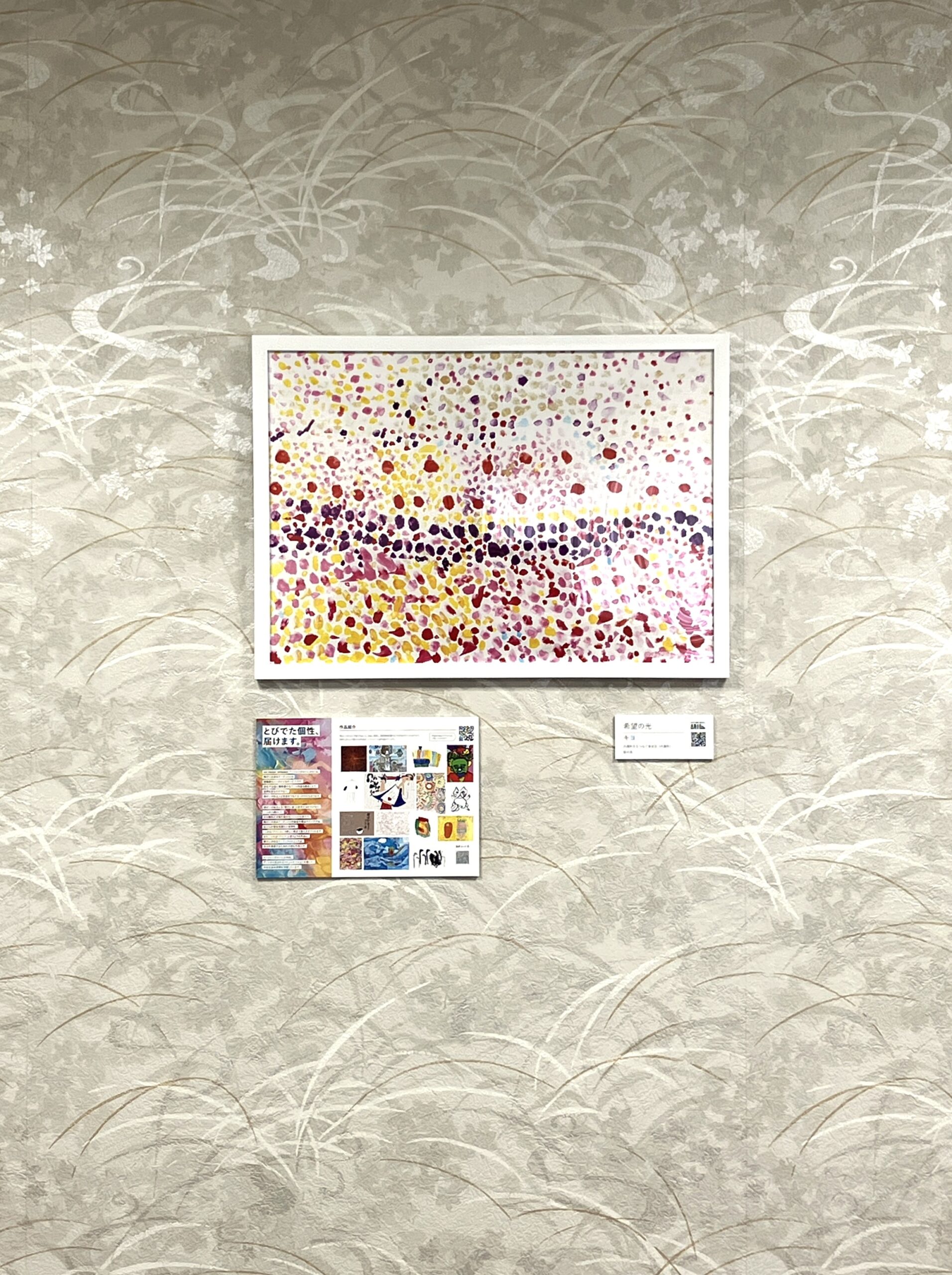 「希望の光」は夢中になって絵具で点を描き完成させた作品。画面一面が明るく輝き周囲を照らしてくれている様です。