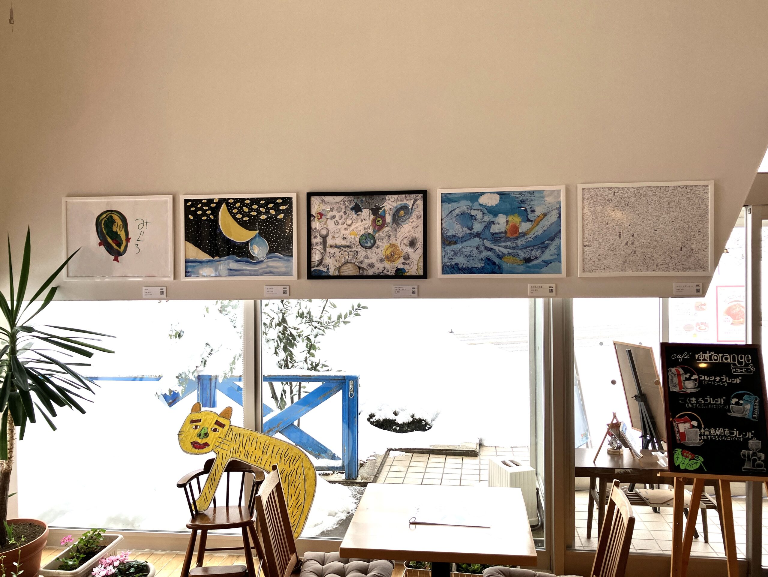 常設展示場として展示させていただいているCaféゆずオレンジの展示が新しくなりました。店内には、8作品のアートレンタルの登録作品と共に沢山の作品が展示されています。
