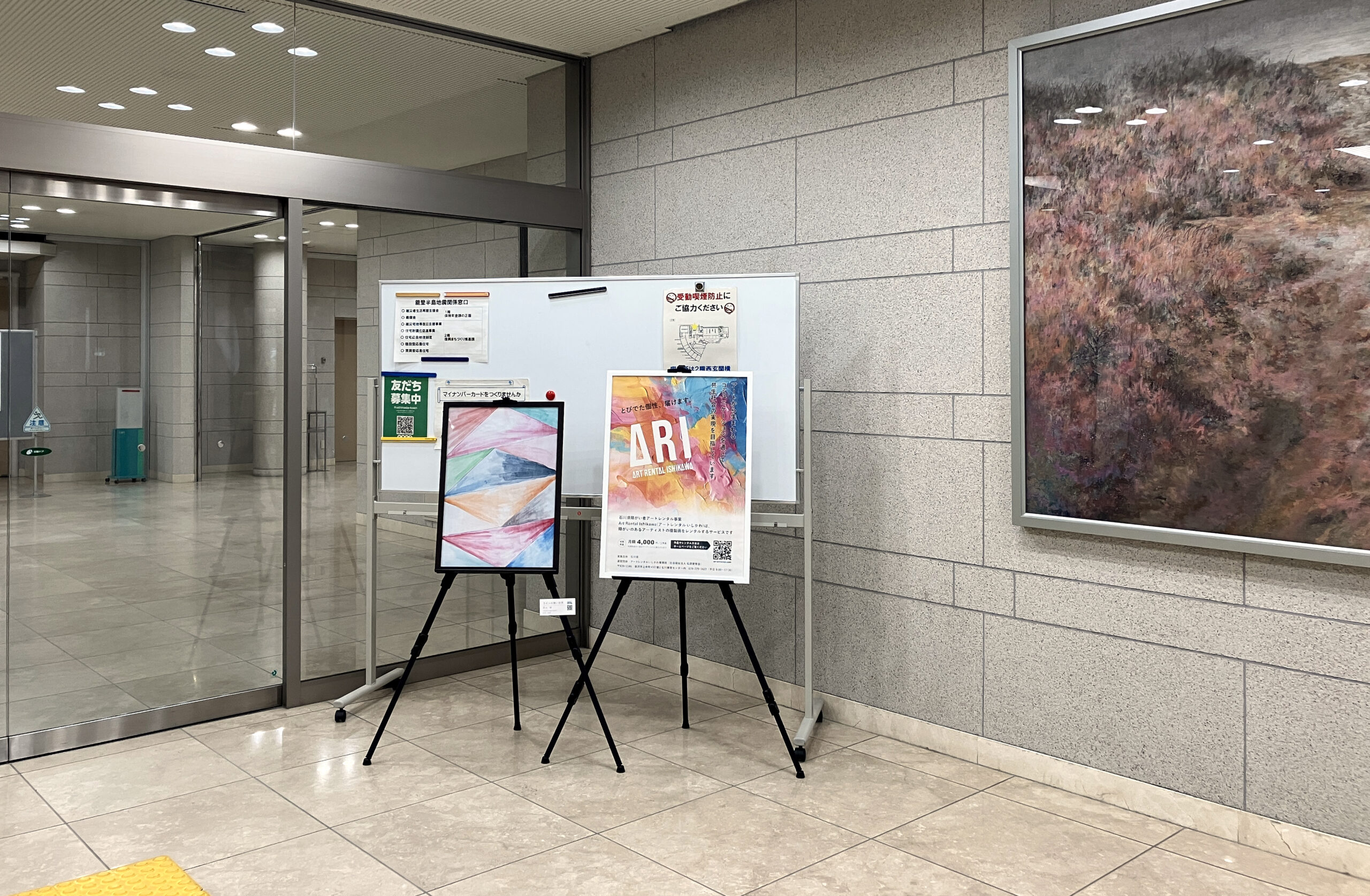 正面入り口には、満開が待ち遠しいチューリップ。見ているだけで暖かい日の風が感じられます。内灘町役場にお越しの際は、是非2作品をお楽しみ下さいね。