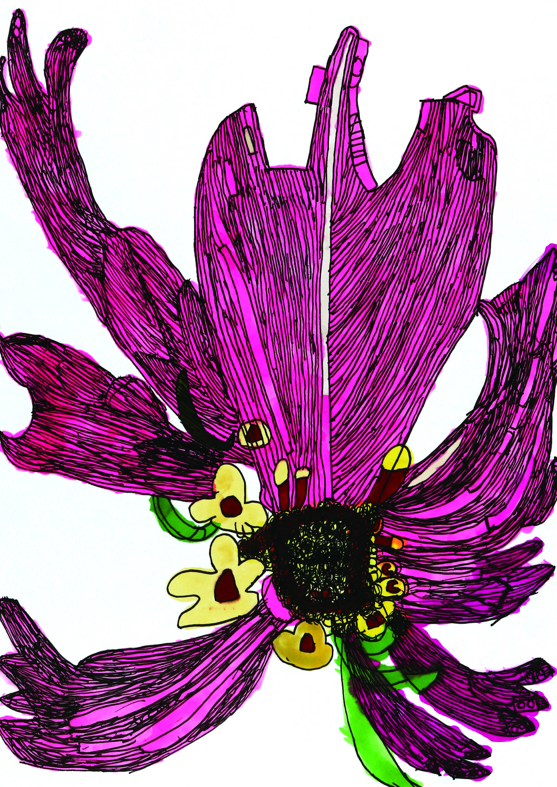 サインペンを使用するとペン先がきれいに同じ太さになるように手や体を使いながら仕上げていきます。最後に署名にも力を入れて描き上げます。