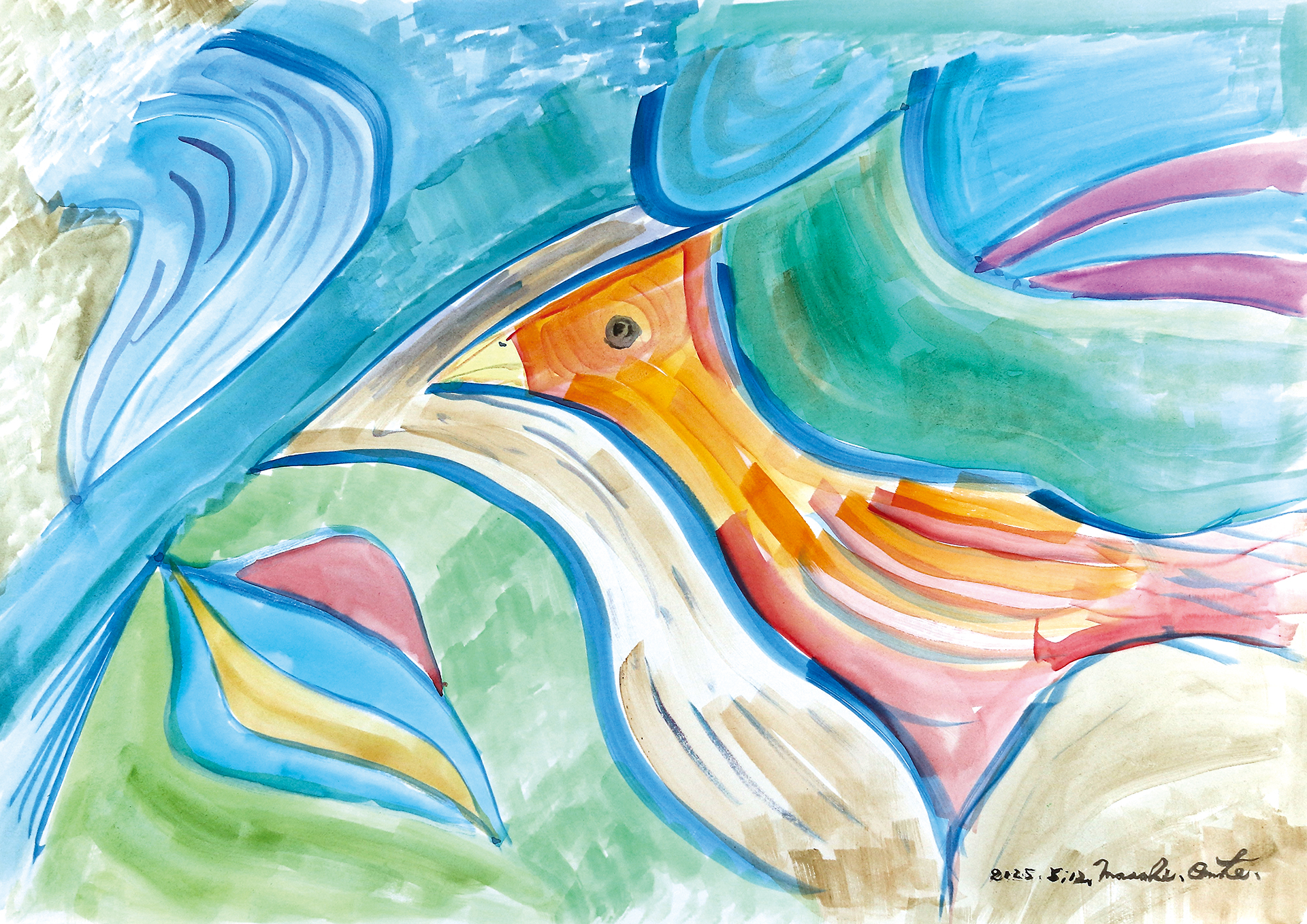 普段は図鑑を見ながらカエルなどの動物を描く事が多い前田さんですが、めずらしくお花のモチーフを選びました。3週間に渡って描きあげた作品です。